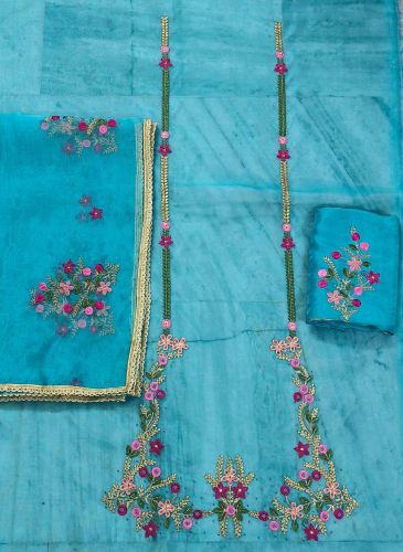 Teal Blue Silk Unstitched Suit